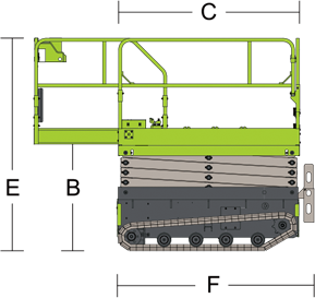 B 作業床最小高さ | 1.62m | 5ft4in |